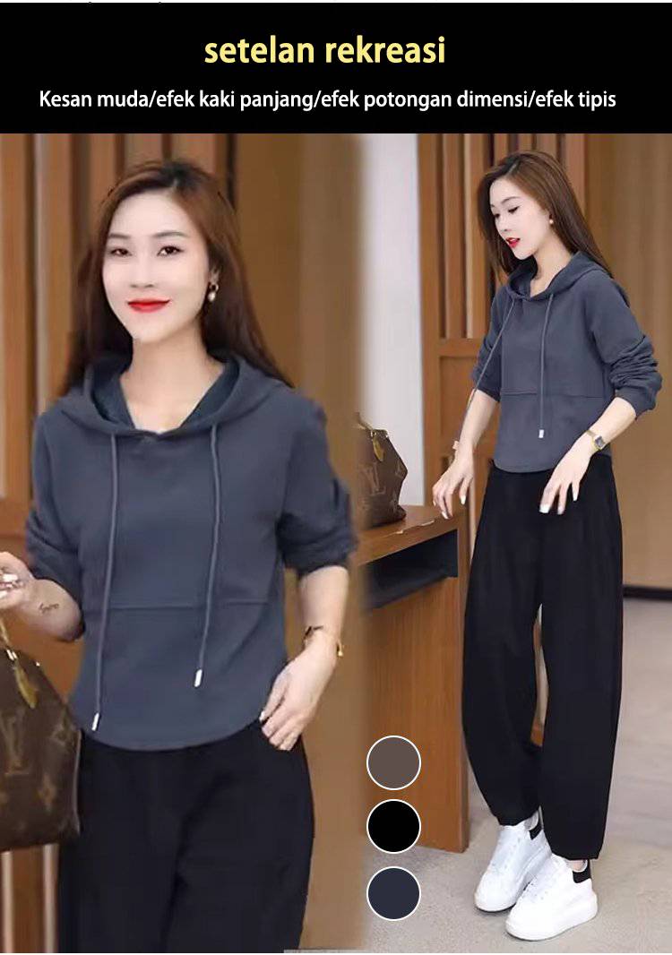 15 Menit LaluSet hoodie + celana olahraga【beli satu gratis satu】Tersedia dalam tiga warna, bisa dipakai 90kg - beli satu gratis satu