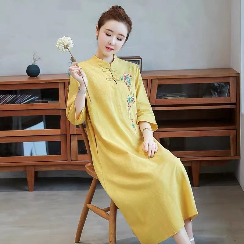 2 Menit LaluRok panjang katun dan linen yang dirancang dengan tangan, kain katun dan linen alami, bernapas dan tidak alergi, sangat sejuk di musim panas, cocok untuk pakaian sehari-hari, - Beli satu【379000】