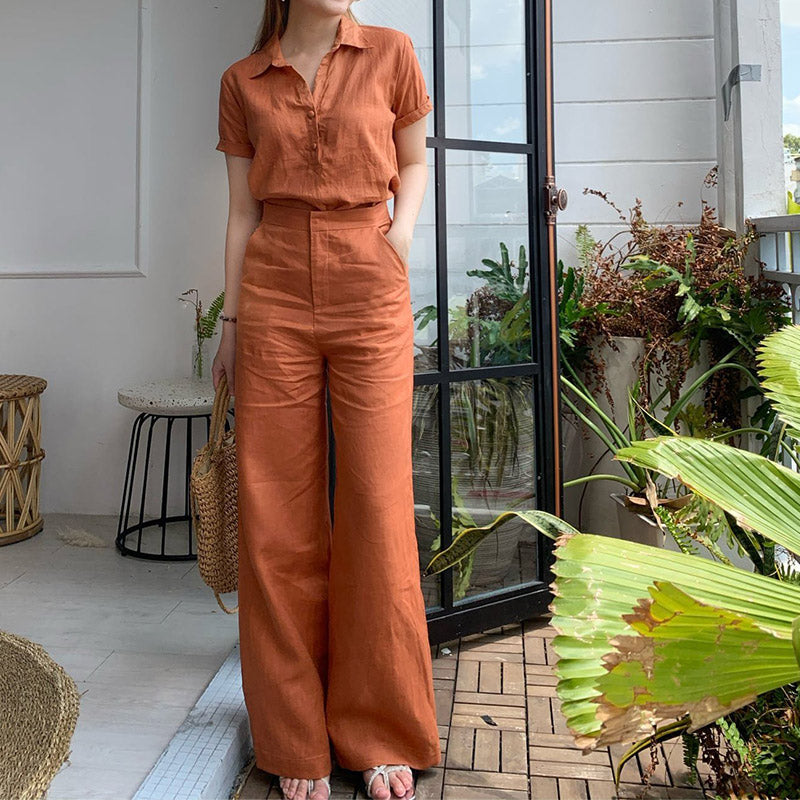 【diskon waktu terbatas】Pakaian baju lengan panjang, celana pinggang elastik kaki lurus, kain kualitas tinggi